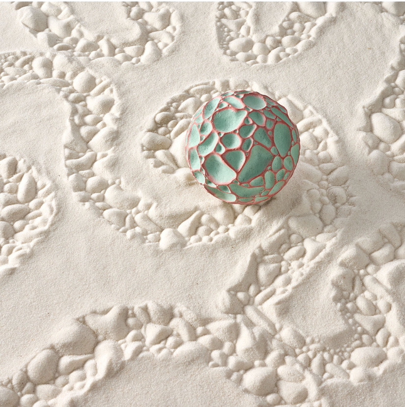 A more randomized play of concave reversibility. Smooth stones and gravel of a clear flowing river bed. Another design that challenges your eyes to recognize a repetitive pattern.